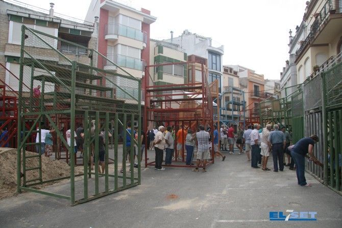 Las collas participan en el montaje de la plaza de toros en Cabanes