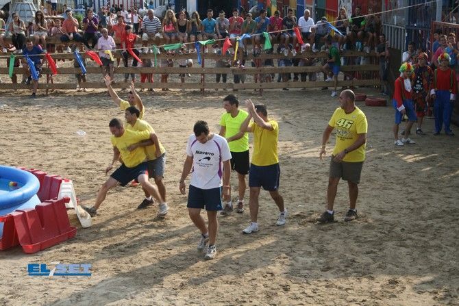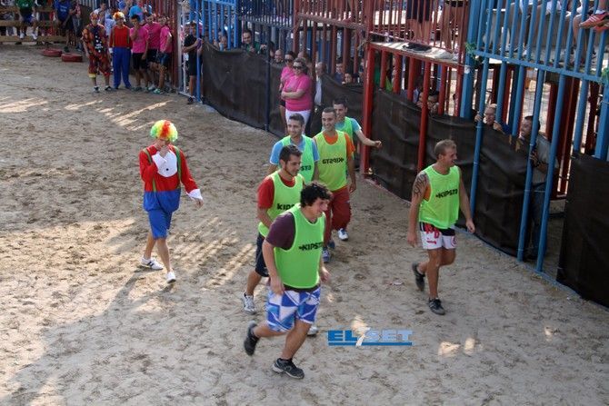 Ya por la tarde fue el turno de los valientes algo más mayores. La primera edición del Grand Prix de Alcalà de Xivert fue todo un éxito en cuanto a risas y asistentes que no quisieron perderse como cuatro equipo se enfrentaron a las numerosas pruebas de habilidad sorteando las embestidas de alguna de las vaquillas.