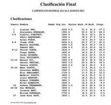 Quiero agradecer desde aquí, a las más de cien personas que habéis participado en mayor o menor medida de este circuito veraniego. El ritmo de juego rápido es muy apropiado para estas calurosas fechas, donde lo que importa es pasar una tarde agradable en compañía de la familia ajedrecística. Pienso que ha sido un acierto la ampliación del circuito a otras poblaciones de les Terres de l´Ebre, y quisiera invitar desde aquí a otras poblaciones de la zona que para el próximo año quisieran sumarse a este proyecto común de promoción del ajedrez en nuestras tierras.