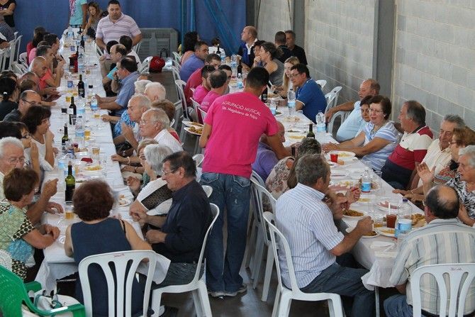 Los asistentes a esta fiesta pudieron disfrutar de un excelente menú compuesto a base de embutidos y pan con tomate, un plato de paella, fruta y pastas típicas de la localidad. Además tampoco faltó el cremaet y la música y baile hasta altas horas de la noche.