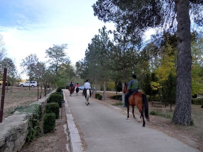 La ruta, con una hora y media de duración, permite a los visitantes aprender las pautas básicas de la monta. Así mismo se les muestra cómo se colocan los diferentes elementos que sirven para poder montar. El recorrido permite pasear junto al río Berganges, junto a frondosas choperas.