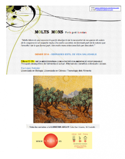 Dilluns13 19h. DIETA MEDITERRÀNIA COM A PATRÓ D’ALIMENTACIÓ RESPONSABLE