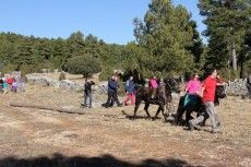 Cada pino se engancha a un grupo de animales y los llevan hasta el pueblo.