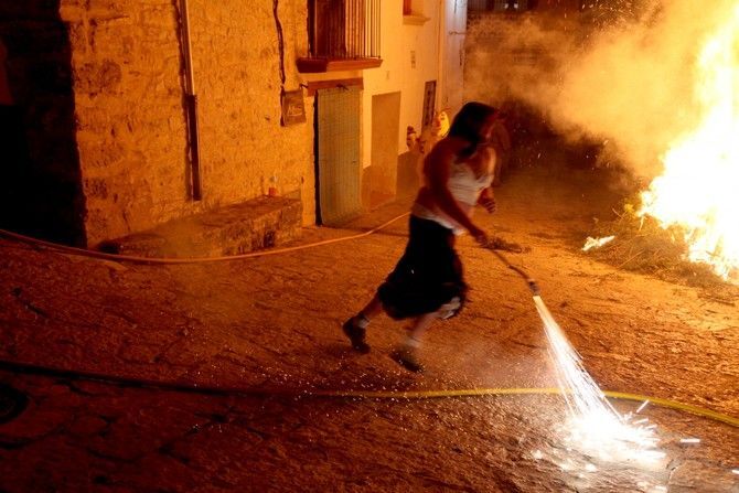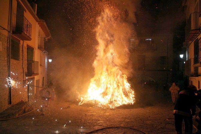 Los actos centrales se desarrollaron en la noche del sábado. A las 21h el párroco de la localidad bendijo a los animales en la plaza. Desde allí comenzó el recorrido hacia la casa de los mayorales. Con el sonido de la dulzaina y el tambor avanzó la comitiva que encabezaba el alcalde de la localidad, Antonio Querol, seguido del estandarte de Sant Antoni portado por el mayoral y también el gallo.