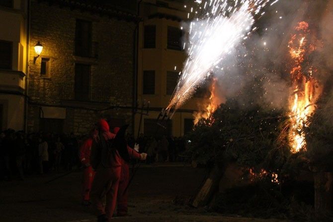 [Img #29238]Vilafranca otorga protagonismo en la fiesta de la Publicata hoy domingo a Sant Antoni. Anoche se prendió fuego a la barraca que se confeccionó a lo largo de la tarde tras haber ido al monte a recoger el ramaje que la vestiría. Durante la jornada de hoy domingo la ronda llenará de música y baile las principales calles del municipio y también cobrarán protagonismo los personajes de la vida del santo.
