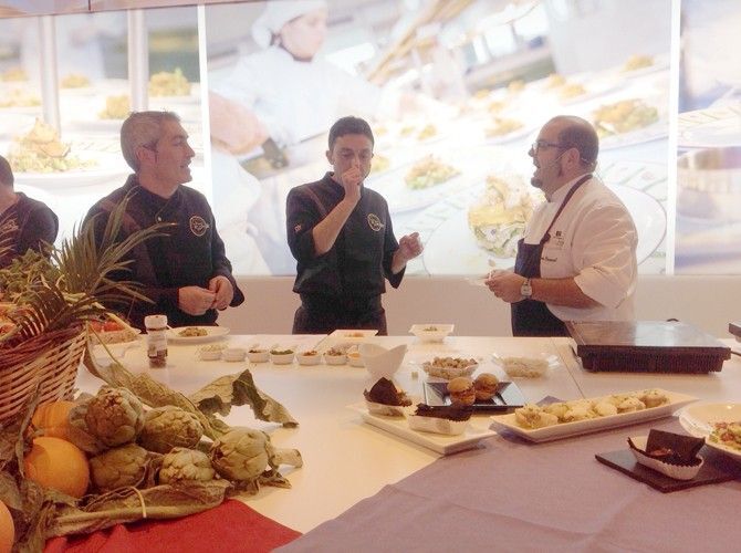 El show cooking ha propuesto a los asistentes conocer la elaboración de seis recetas con productos autóctonos y marcado carácter mediterráneo que han podido degustar los asistentes. Hasta 500 raciones de hamburguesa de pulpo con crema de sanfaina, buñuelos de all i pebre de rape, alcachofa confitada con langostino y galleta de tomate, gyoza de olleta de Peñíscola, caracol punxent reconstruido con su relleno o patatas con pescado y arrossejat.