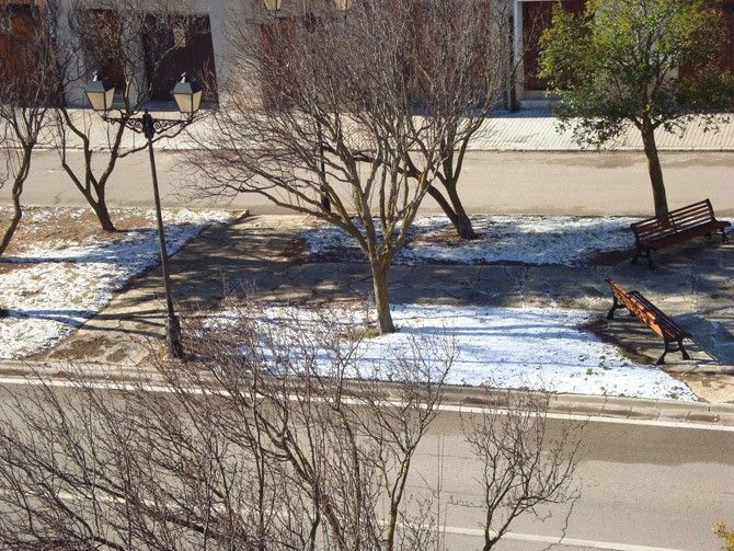 Este matí a Vilafranca la neu estava reclosa als camps, les zones ajardinades i els teulats.