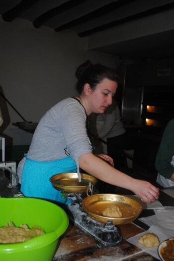 En el horno del pueblo se elaboró la masa y los mayorales y mayoralesas, acompañados de amigos y familiares, se encargaron de preparar artesanalmente el clásico pastel, que pesa casi medio kilo. Una vez cocidas las pastas quedaránen en reposo para su reparto el próximo sábado.