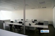 Al igual que en la planta inferior, encontramos despachos, núcleo de comunicaciones y zona de trabajo abierta. La zona de trabajo cerrada, situada a la derecha del núcleo de comunicaciones, se sustituye en esta planta por dos despachos cerrados, una sala de reuniones y un archivo.