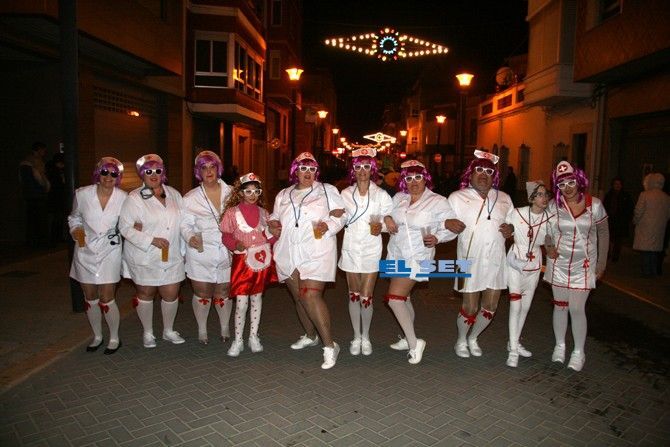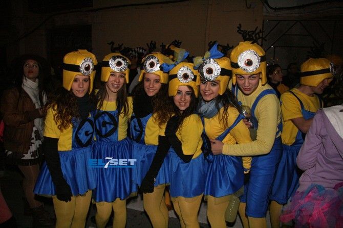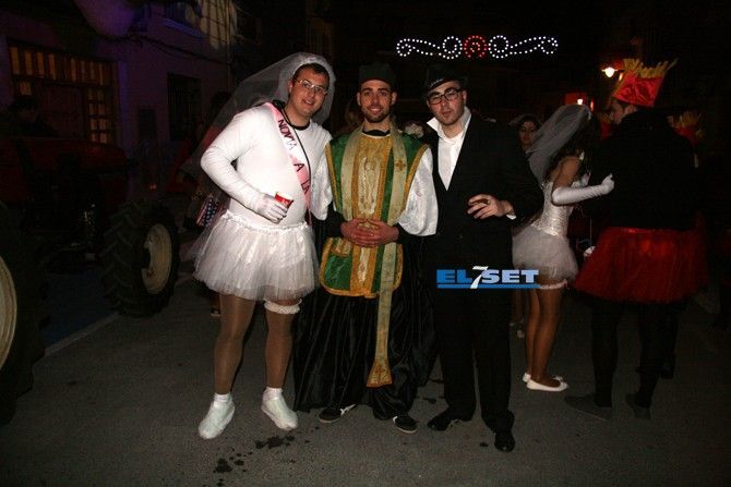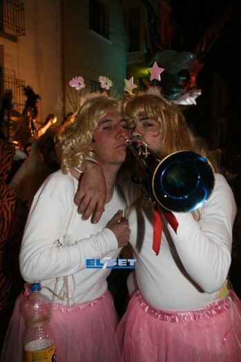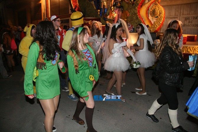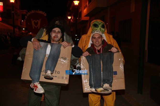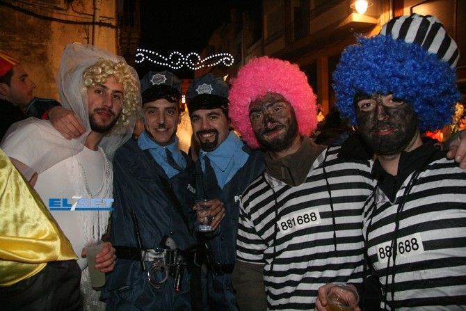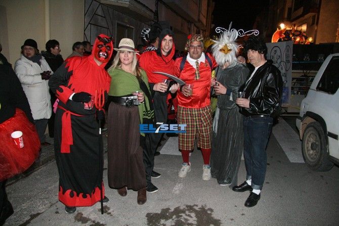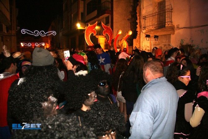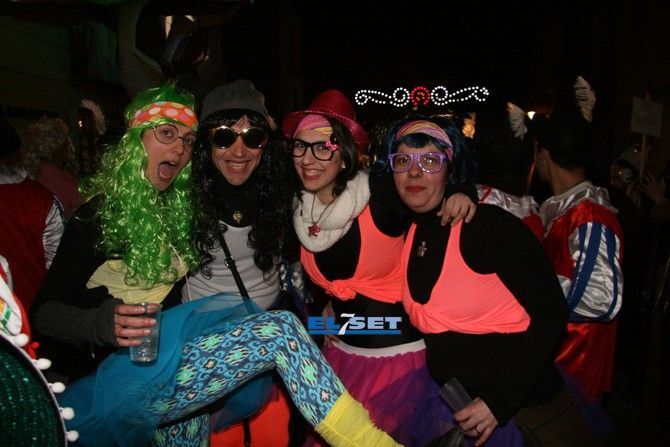 La noche del viernes la tradición marca que cualquier disfraz es válido para recibir a Su Majestad Carnestoltes, de modo que se echa mano de lo primero que se encuentra, bien sea un disfraz reutilizado de años anteriores o uno improvisado con el fondo de armario de la abuela. En un ambiente desenfadado, las indumentarias contrastan poderosamente con los que se lucirán en la grande del carnaval el sábado. De todos modos, vecinos y visitantes ya derrochan en los primeros compases de la fiesta imaginación en sus atuendos.