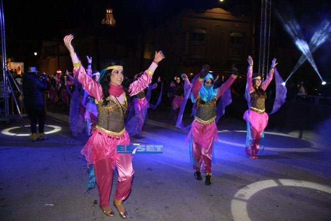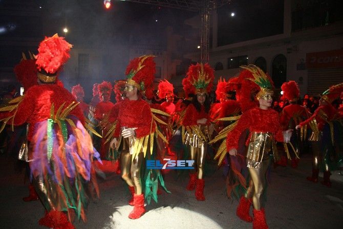 Con la noche llegó el desenfreno. Un total de 23 collas salieron a la calle con su puesta de largo tras muchas semanas de trabajo. Era momento de disfrutar de la gran fiesta del Carnaval participando en el recorrido multicolor.