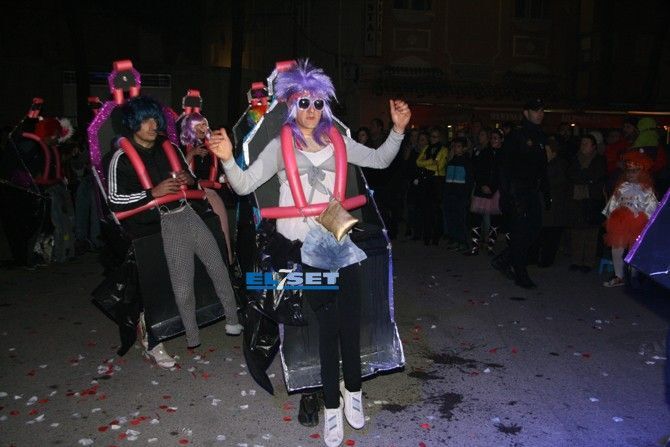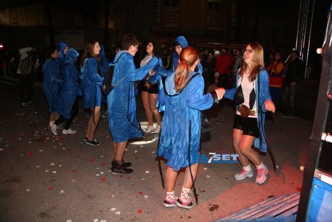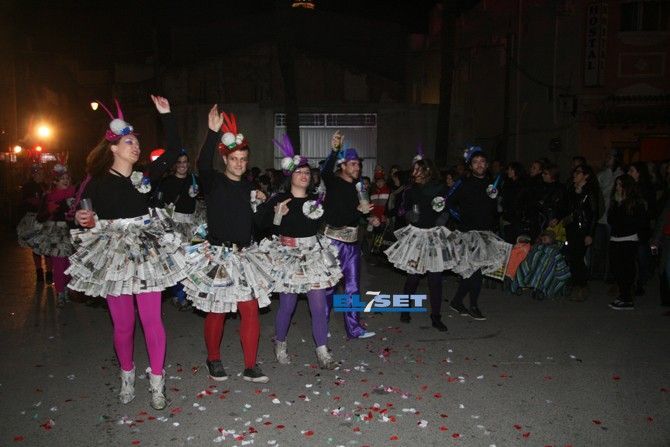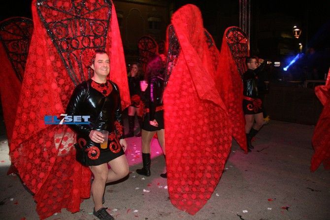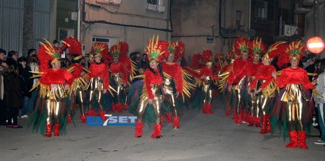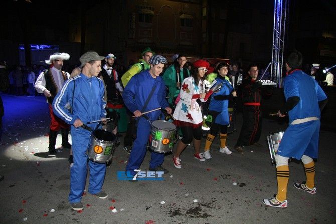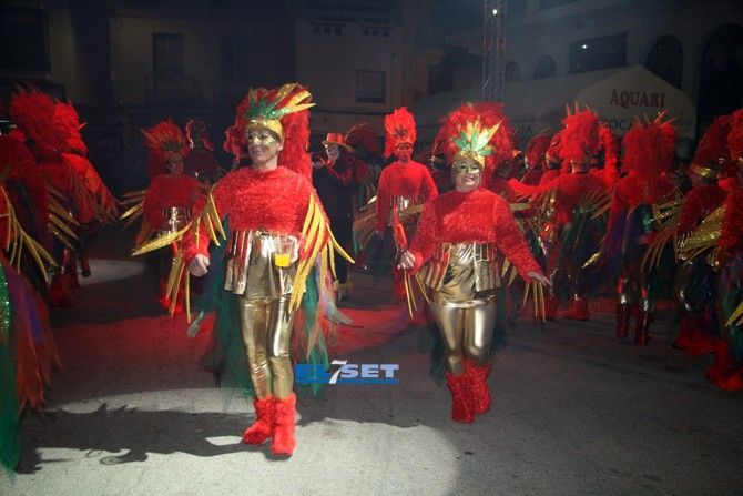 Tonos rojos para la colla “La Risa” y “Deluxe”, “La Secta” optó por un color algo más sencillo pero con un toque ecológico, reutilizando periódicos para sus atuendos. La colla “Moska gao”, fue el grupo más joven en participar, con un disfraz de Alicia en el país de la maravillas; seguidamente también con tonos azules la “Colla 2.0” convirtieron el sambódomo en un ring con sus disfraces de boxeadores. La Colla “Ute” llegó revoloteando pasos de salsa con sus mariposas de fantasía, mientras que las collas "Descontrol" y "Tots a una" apostaron al blanco y negro, a rombos pero con estilos diferentes.