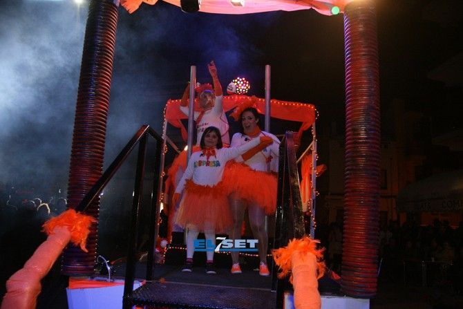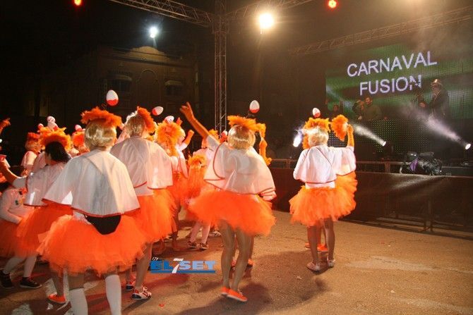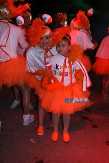El color naranja fue el escogido para la colla "El Orinal" combinándolo con llamativos colores y los "Carnaval fusión" sorprendieron con sus Kinder con tutus naranjas.