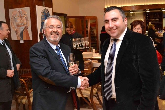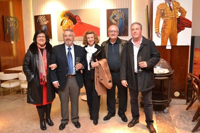 Acompañando al pintor vila-realense, durante los parlamentos estuvieron el diputado de Turismo de Interior y de Asuntos Taurinos, José Pons; el gerente del Restaurante Casino Antiguo, Lino Sanchís y la periodista cultural Patricia Mir.