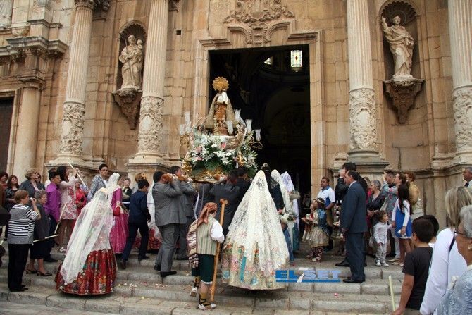 María Cherta, ataviada con un hermoso traje regional, explicaba que todos los años ha participado en la procesión, precisamente desfilando con el grupo de vecinos que encabeza la procesión vestidos con indumentaria tradicional. Con esos antecedentes no podía ocultar su emoción por ser mayoral de la Mare de Deu este año.