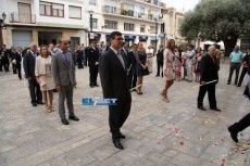 Con la salida de la Mare de Deu dels Desamparats comienzan los aplausos y el repique de las campanas, primero la de la ermita y después las de la Iglesia Parroquial, mientras la Unión Musical Santa Cecilia interpretaba el himno de España, dando comienzo a la procesión.