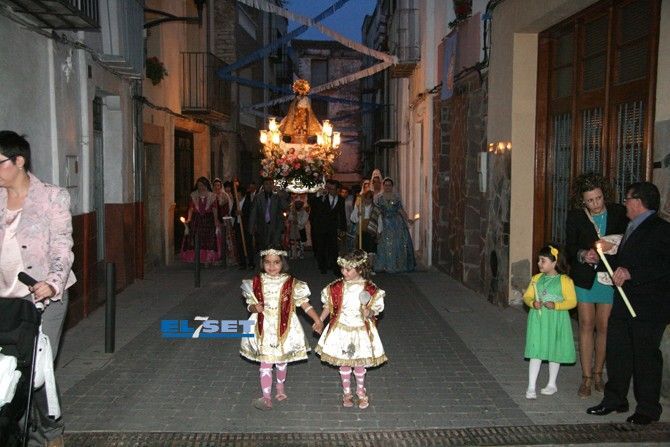 El repique de la campana de la capilla, a la caída la noche xivertense, recibe a la Mare de Deu a la llegada a su templo, a cuya puerta se congregaron numerosos fieles para cantarle la Salve.