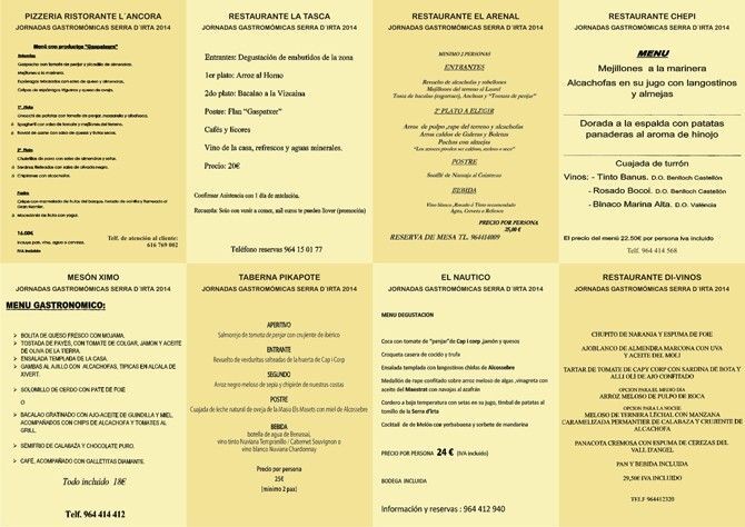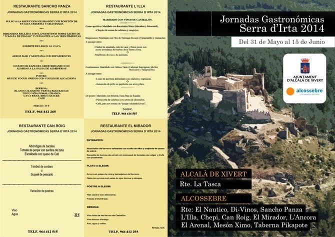 [Img #33552]Alcala de Xivert-Alcossebre council, jointly with the Municipal Tourism Department, is organising the 2014 First Sierra d’Irta Gastronomic Festival, which will be held in various local restaurants between the 31st May and 15th June.