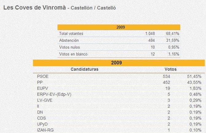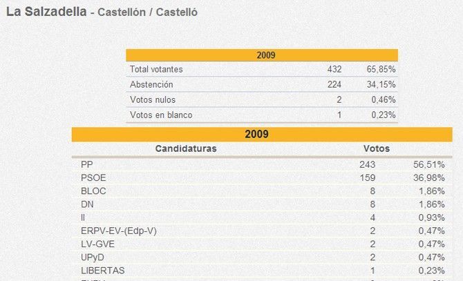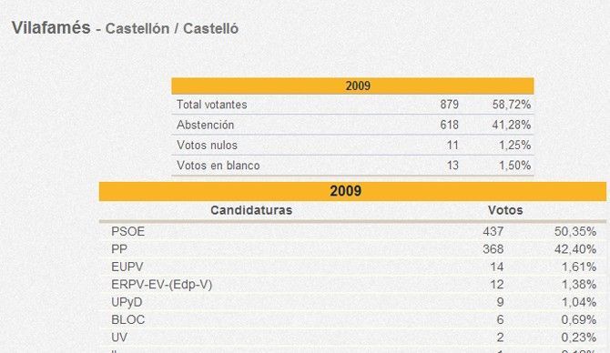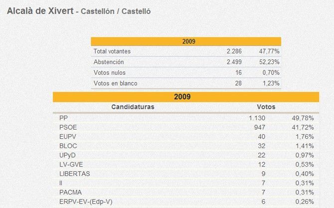 En todos estos pueblos, salvo en Vilafamés, ha ganado el mismo partido que ganó en las pasadas elecciones europeas de 2009, pero se ha visto drásticamente reducido el número de votos obtenidos por estos partidos (PP y PSOE).