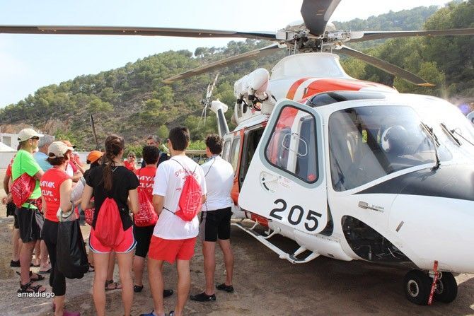 El Helicóptero llegó al Puerto Deportivo de Oropesa el sábado por la tarde. Allí, en tierra, se dio una pequeña charla a los piragüistas de cómo se iba a realizar el rescate, pero también, de cómo debería actuar un piragüista en apuros para facilitar su salvamento.