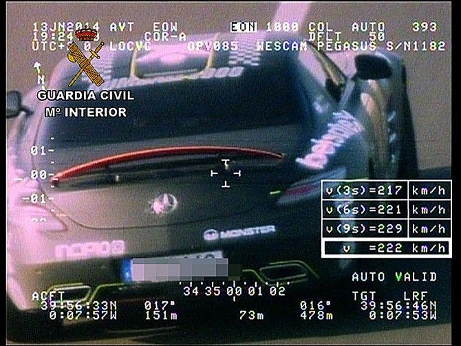 La actuación se inició cuando el Pegasus (Helicóptero con dispositivo radar de la Dirección General de tráfico) interceptó a dos vehículos de alta gama que circulaban a una velocidad media de 217 km/h y 227 km/h por la Autopista AP-7 de Castellón sentido Barcelona, siendo la velocidad máxima permitida 120 km/h, procediendo seguidamente a dar aviso a la Guardia Civil de Tráfico de Castellón.
