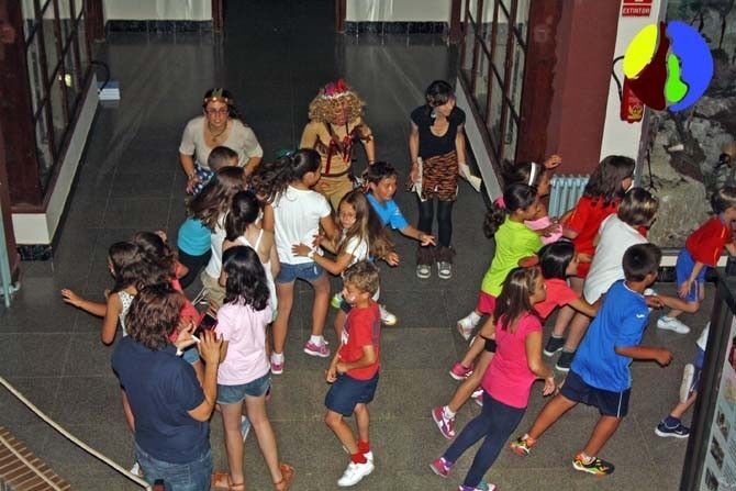 Una primera actividad de presentación fue el arranque de los muchos momentos de entretenimiento que siguieron a continuación, en los cuáles, los niños y niñas conocieron el museo de un modo muy distinto al que ya lo habían hecho en otras ocasiones, ya que la gincana que organizaron las monitoras requirió carreras, risas, algún que otro grito y, por encima de todo, mucha diversión. Tras esta actividad se sucedieron otras no menos interesantes, como la de realizar una cabeza de lobo con plastilina, canciones y coreografías, teatro, etc.