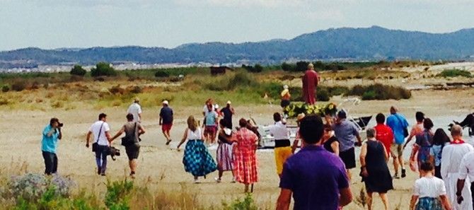 Tras la actuación del Grupo de Danzas de Cabanes ayer por la tarde y el vino de honor ofrecido por las Amas de Casa de La Ribera, la jornada del domingo 29 comenzó a las siete de la mañana, con la despertà y el reparto de cintas para la romería desde la iglesia hasta la playa de Torre la Sal.