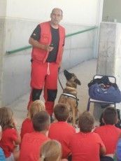 Los pequeños quedaron con la boca abierta tanto al oír las explicaciones de sus adiestradores como al ver los ejercicios de búsqueda de los canes. La base del trabajo de búsqueda y rescate que llevan a cabo estos animales se basa en las técnicas de rastreo, venteo y vista. Además de los perros, complementan este equipo voluntarios que también trabajan en otros ámbitos de ayuda a la población civil como son: Bomberos Forestales, Guardia Civil, Militares, Instructores de Perros, Cruz Roja, etc.