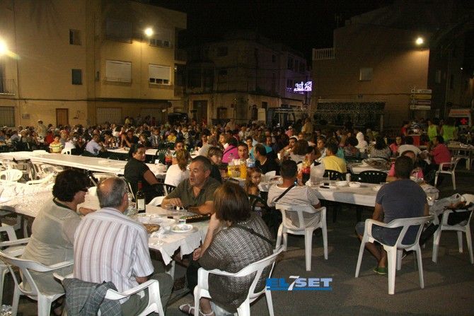 Alrededor de 1.100 vecinos de la localidad se reunieron en la Plaza Justo Zaragoza para participar en esta cena, desafiando a la lluvia y demostrando ganas de pasarlo bien y un estoicismo a prueba de chaparrones. El Ayuntamiento ofreció a los comensales leña, parrillas para asar, vino y fruta, corriendo a cargo de los vecinos las viandas para torrar en las brasas. El evento sirvió también para recaudar fondos para el colectivo de Les Fadrines 2015.