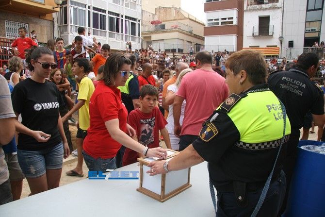 Este sábado tenía lugar en la Plaza de Toros de Torreblanca el más emotivo, solidario y divertido evento de todas las fiestas, dedicado a la recaudación de fondos para ser destinados a la investigación de la Esclerosis Lateral Amiotrófica (ELA). Cientos de vecinos de la localidad participaron en este evento solidario, mojándose, aportando dinero y mostrando además su apoyo al agente de la Policía Local, Lluis Nebot, a quien se le ha diagnosticado esta enfermedad.