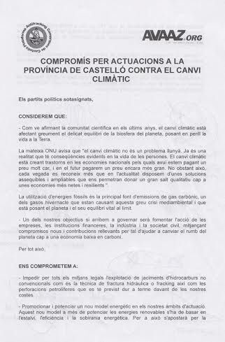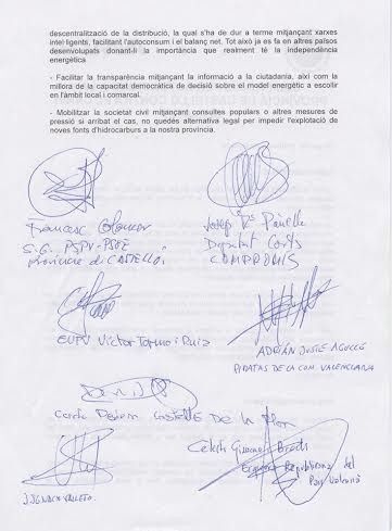 Además, estos se comprometen a impedir cualquier práctica de explotación de yacimientos de hidrocarburos no convencionales, como es el fracking y las prospecciones petrolíferas, que se quieren llevar a cabo en nuestras costas.