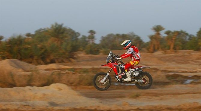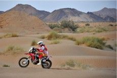 Joan Barreda es más líder en el Rally OiLibya de Marruecos tras una impresionante victoria en esta segunda etapa, con varios kilómetros de dunas y mucha navegación, donde, tras salir en primer lugar, también logró finalizar sin que nadie consiguiera atraparle y aumentar su ventaja en la clasificación general con dos minutos más sobre Marc Coma, que es segundo. La ventaja podría ser mayor de no cometer un pequeño descuido en la navegación que le costó algunos minutos.