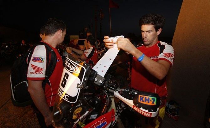 En la segunda posición de la jornada se ha situado el nuevo piloto del Team HRC, Jeremías Israel. El chileno, que ayer fue penalizado por entregar tarde el carné de ruta, se ha encontrado bien en la primera parte y tan sólo el polvo de algunos pilotos que le precedían le ha obligado a bajar un poco el ritmo.