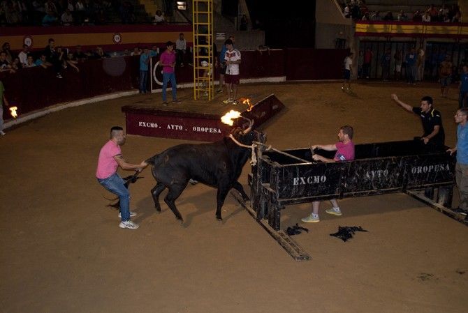 En la recta final de las fiestas patronales de Oropesa del Mar, los actos taurinos cobran un especial protagonismo. A los tradicionales encierros matinales y al mediodía, se les suman las exhibiciones de prestigiosas ganaderías, así como los toros cerriles.