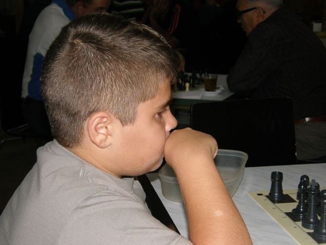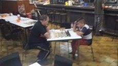 En la partida más larga de la noche donde después de 1h. 30m. aún no se habían matado ni un peón, rompe Juanito cansado ya de jugar cuando le quedaban 6m. y a Toni 12m.; entra Toni en la tupida defensa de Juanito y gana la partida. Pascual - Gil 1/2- ½. Tablas sin mucho más comentario. Sala - Loriente 0-1. Sala lanzó un ataque, para el que Loriente muy bien, había encontrado un escape. Quedó mal Sala y Loriente consiguió una torre limpia. Y la pérdida de otra pieza hizo que Sala tirara el rey. Sócrates - Comes 0-1. No pude ver la partida pero el resultado, deja muy bien a Comes con 2 puntos y a Socra muy mal con 0 puntos.