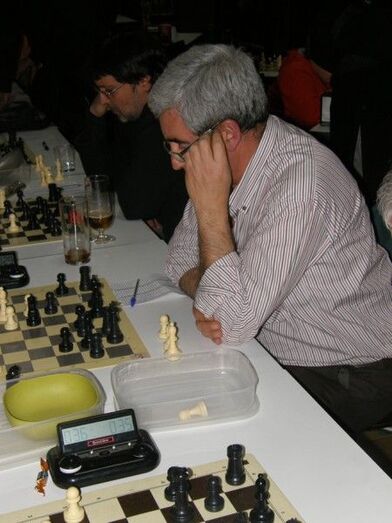 Igualada partida entre Albert y Barreda que llegó a un final de rey y peón contra rey. El "pescatero" jugó muy bien sus bazas aunque hubo momentos que no las tenía todas. Barreda iba recuperando todas las ventajas que iba regalando, pero la bestia negra de Barreda de nuevo le ganó la partida. Merecido punto para Albert.