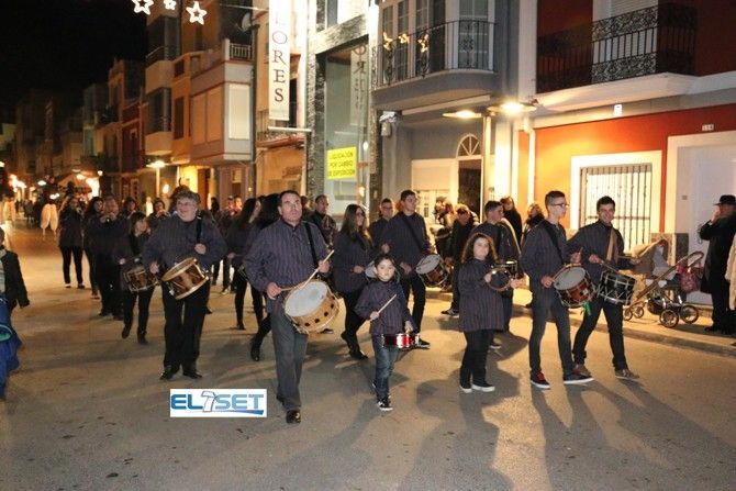 Una comitiva estaba encabezada por los dos gigantes del municipio, seguidos por otros gigantes, los miembros del grupo de zancudos Alcozancos, una carroza con Pajes Reales. No faltó tampoco la música navideña a cargo del Grup de Dolçainers i Tabaleters “El Senill” y la Unión Musical Torreblanca, además de otro grupo de Pajes Reales a pie iluminando con antorchas el paso de la carroza en la que viajaban Melchor, Gaspar y Baltasar.