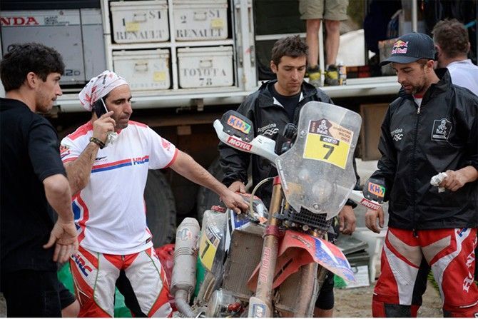 "Bien, hemos salido con un ritmo muy alto. Era un día fácil, con poca navegación, siempre en pista principal. Ha salido bien. Es una lástima el día de Uyuni, porque perdimos todas las opciones. Veníamos líderes y ya con todo el trabajo difícil hecho, pero ahora ya solo me queda resignarme y acabar lo mejor posible. Estaremos ahí e intentaremos ayudar para obtener un buen resultado para el equipo".