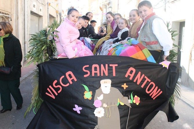 Numerosos vecinos participaron en una procesión con carros y caballos y con el típico carro 'triumfant', que portaba el santo, en esta edición, Bautista Pegueroles, uno de los mayorales de más edad.