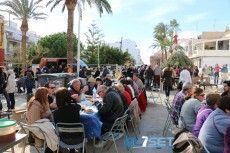 Ni que decir que los esforzados voluntarios tuvieron recompensa a sus trabajos en forma del tradicional almuerzo, para retomar las labores de construcción de la hoguera. Otro hito gastronómico fueron las paellas con las que se volvió a poner la mesa y compartir una sobremesa en familia, o entre amigos, descansando para la fiesta nocturna.