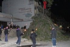 El sábado, desafiando a un fuerte viento, los voluntarios acompañaban a los mayorales para la recolección de la leña necesaria para la construcción de la hoguera, así como del “pi dels fadrins”, que los solteros de la localidad cortan y transportan para creal el pilar alrededor del cual se estructura la leña y ramas que arderían esa misma noche.