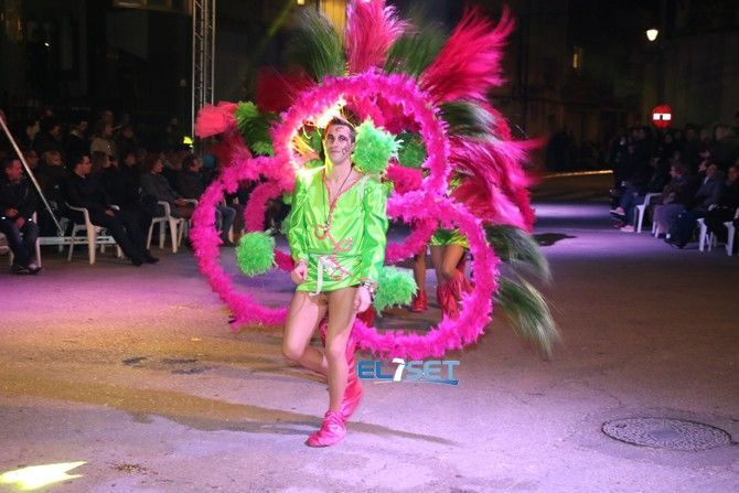 Llegada la noche, un total de 18 agrupaciones desplegaron todo el esplendor de sus disfraces, a cada cual más imaginativo y colorido, en un evento que se ha convertido en el epicentro del desfile de Carnaval, ya que el espacio habilitado para la exhibición de las comparsas permite al público ver una presentación adornada por las luces, el humo y la música, además de que a medida que se consolida esta cita las collas presentan coreografías más elaboradas.