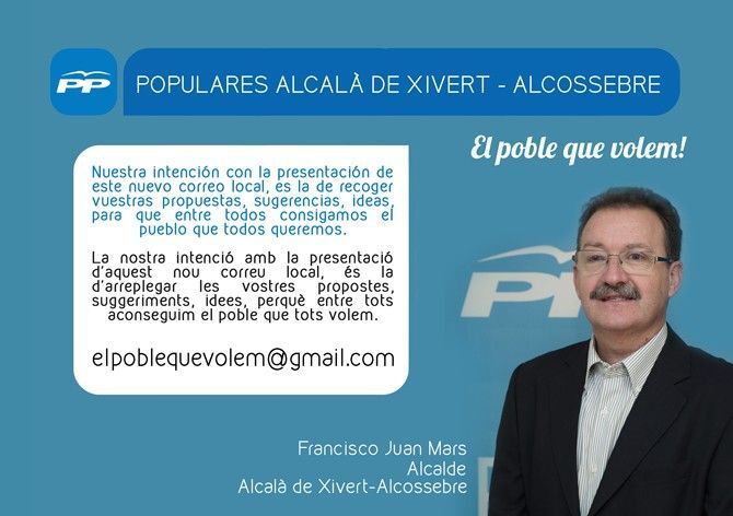 En cuanto a su candidatura como alcalde, Francisco Juan afirmaba “tengo la misma fuerza e ilusión que cuando me presenté por primera vez y mantengo mi compromiso con los vecinos de Alcalà y Alcossebre de que seré alcalde los cuatro años de la próxima legislatura, hasta 2019, y que contrariamente a lo que se pueda decir, no me iré a ninguna parte”.