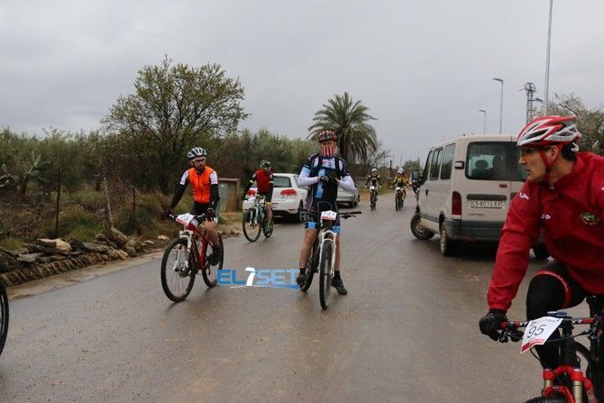 Los 150 participantes en la VII Marxa BTT Alcalà de Xivert, con la que arrancaba este domingo 22 de marzo el V Circuito BTT Muntanyes de Castelló, desafiaron a unas condiciones meteorológicas adversas para completar los 40 kilómetros de recorrido de la prueba.