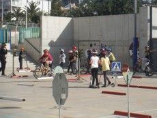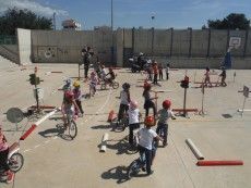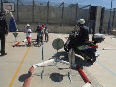 En el apartado de clases prácticas, los alumnos y alumnas llevaron a la escuela sus propios vehículos, desde bicicletas a monopatines hasta patinetes, con los que han realizado un recorrido en el que debían atender las señales de tráfico, los pasos de peatones, semáforos y las indicaciones del agente de la Policía Local que los escoltó en moto durante el trayecto.