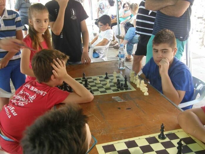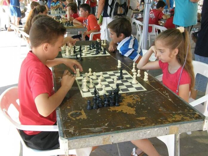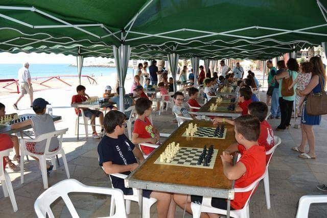 La matinal del domingo 21 de junio el Club d’Escacs Alcalà de Xivert visitó Vinaròs para disputar el 1er Torneo de Ajedrez de Sant Pere i Sant Joan. Gran participación (40 niños) en la ciudad del langostino. Entorno idílico con el mar Mediterráneo como fondo. Y una luz tal, que dificultaba por su alta luminosidad la calidad de las fotos de las cámaras.