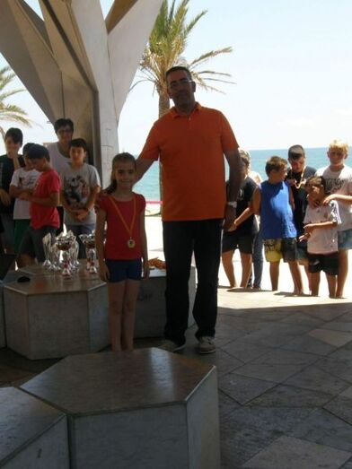 En cuanto a lo deportivo, los jugadores del Club d’Escacs Alcalá de Xivert tuvieron una participación discreta. El mejor fue Marc Lavernia que tocó trofeo como siempre. Le dije de ir a por las tablas en su partida contra Morales, cuando ambos tenían 3 puntos. Pero Marc quiso ir a ganar. Creo que hubiese mejorado en la tabla clasificatoria. A Jesús López sólo le falta un empujón para tocar metal, pues capacidad la tiene, y con muy pocas partidas jugadas más, lo lograría. Vicente Juan hizo un gran torneo, nos sorprendió gratamente. Sus padres deben de estar orgullosos de él. Y Elisa, que hizo 2 puntos y 1/2, se está dando cuenta que aplicando lo que sabe es capaz de conseguir mates, y no ahogar a sus rivales. Con constancia puede jugar bien ajedrez. Le va gustando más poco a poco y le encanta decirme que ha ganado.