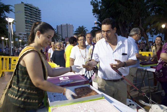 Ya es tradición por estas fechas, y por ello, la Playa de la Concha ha sido el lugar de encuentro para celebrar este festejo. La reina de las fiestas y las damas del municipio han sido las encargadas de repartir las 7.000 porciones que se habían dispuesto y los 200 litros de Moscatell.