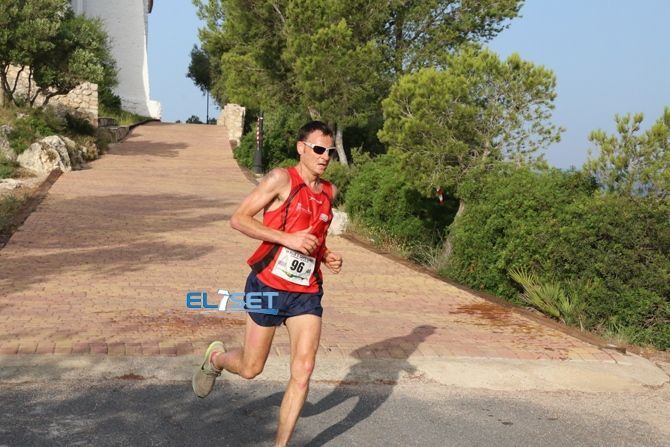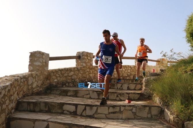 Tras la salida frente al Bar Gales de Alcossebre, los corredores afrontaron el primer reto, que no era otro que la subida a la ermita que da nombre a la prueba, en las estribaciones de la Serra d’Irta, punto del recorrido donde los primeros en pasar eran Fernando Ruiz y Patricia Barreda, lo que hizo a ambos merecedores de un premio.