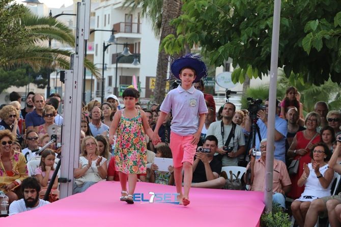 El desfile inició con la moda para los más pequeños, momento en el que las jóvenes promesas de la pasarela desfilaron por la alfombra rosa instalada a orillas del mar Mediterráneo, junto a la Playa del Cargador.